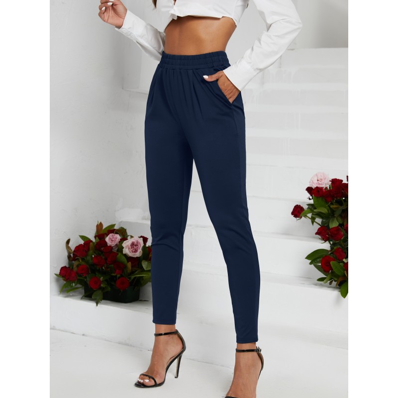 black skinny cigarette pants high waist beltless semi stretch pants elegant bottoms for work womens clothing details 0