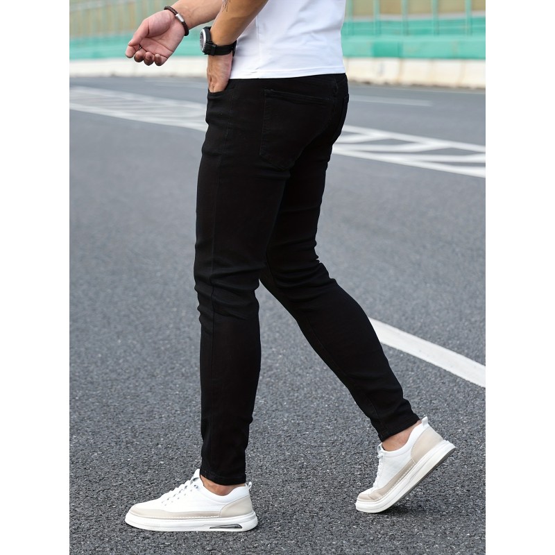 Chic Skinny Jeans, Men's Casual Street Style Distressed Stretch Denim Pants