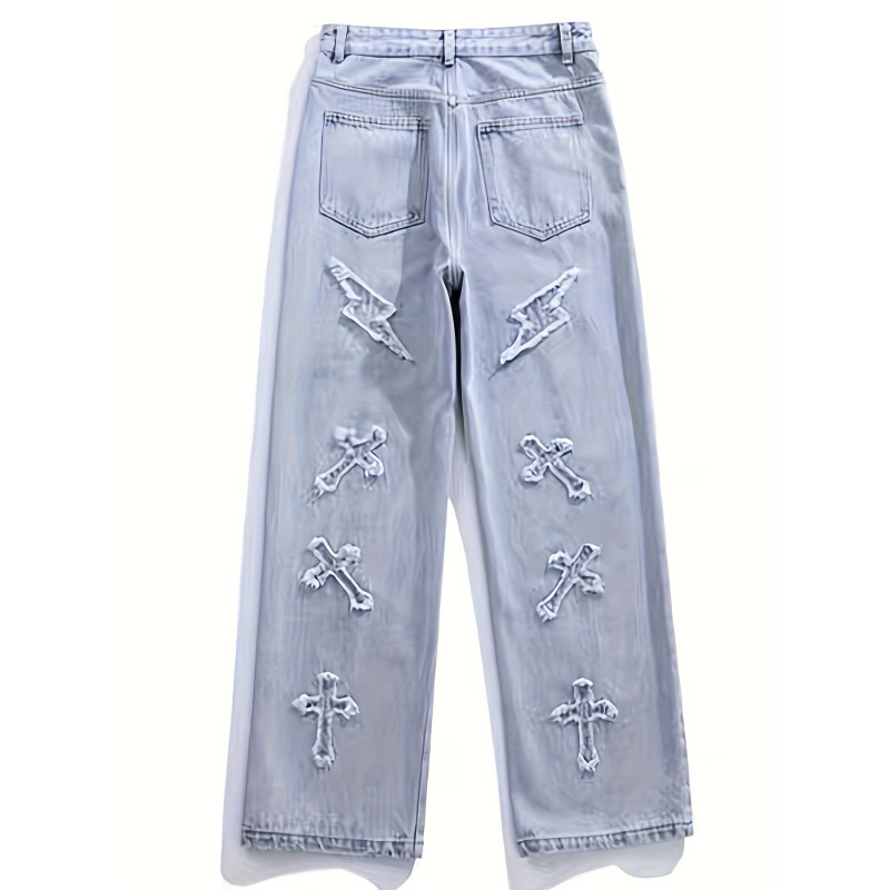 embroidery loose ripped cotton blend jeans mens casual street style distressed denim pants for spring summer details 1