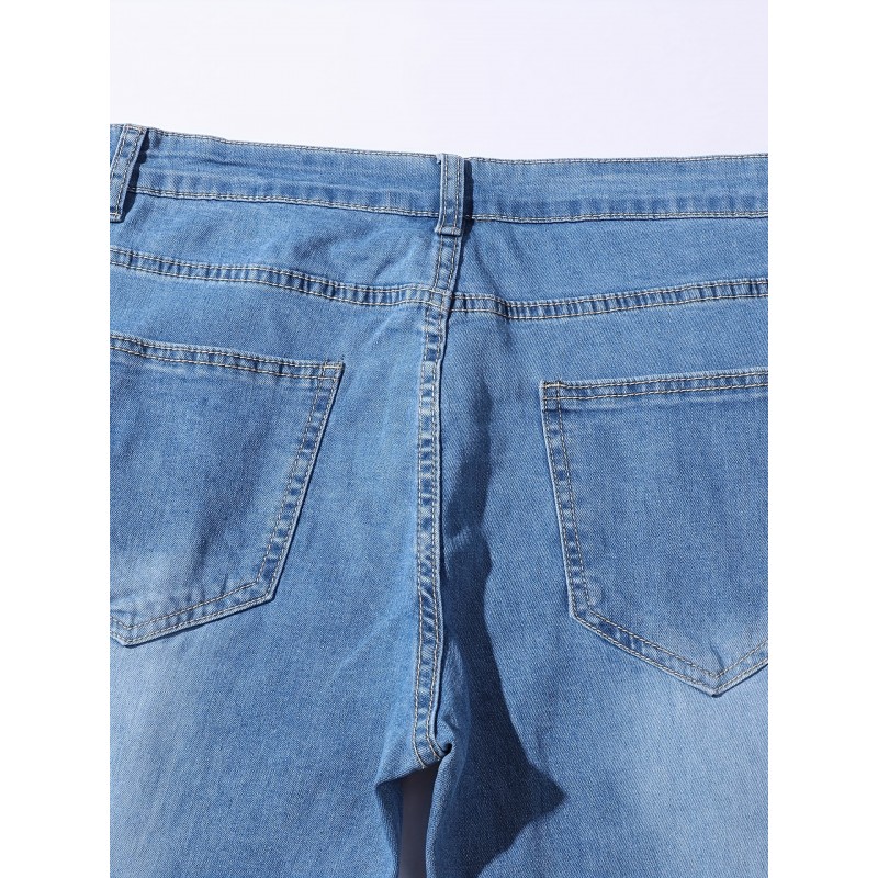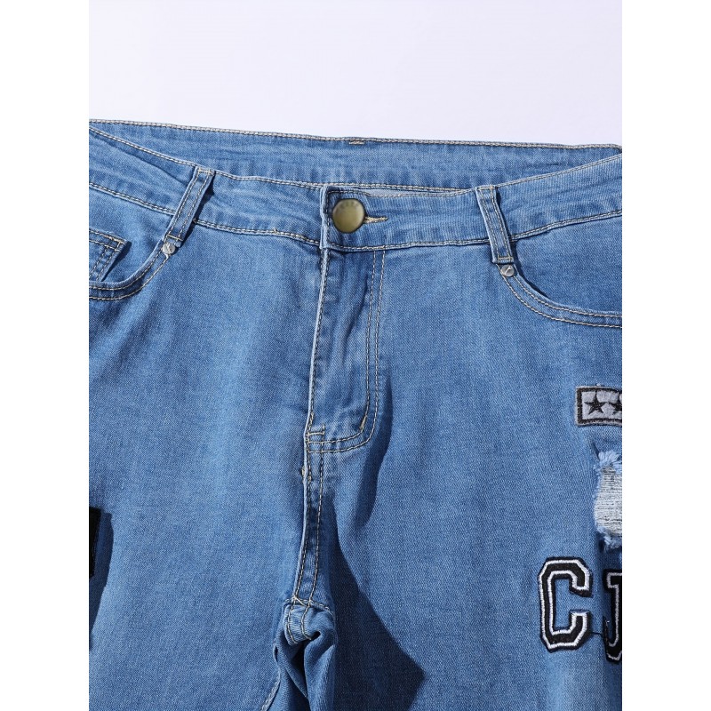 Embroidery Slim Fit Ripped Jeans, Men's Casual Street Style Distressed Denim Pants For Spring Summer
