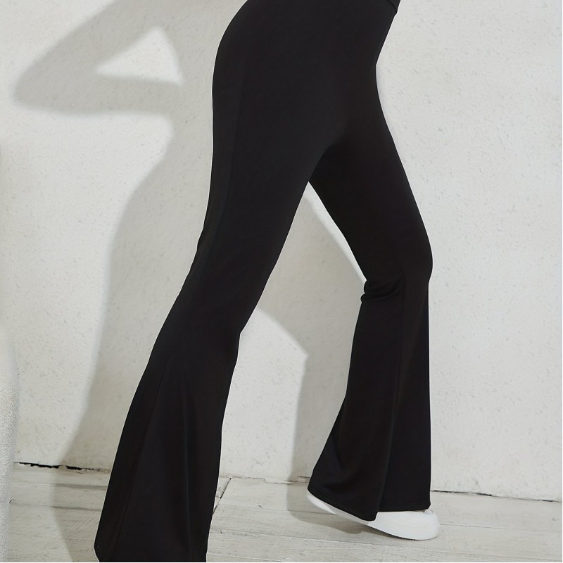 Flared Leg Simple Pants, Vintage Long Length Versatile Bell Bottom Pants, Women's Clothing