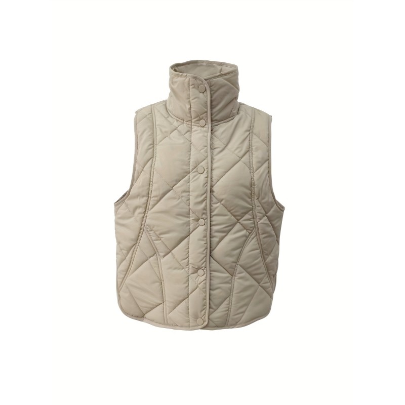 High Neck Solid Jacket, Sleeveless Casual Outwear For Spring & Fall, Women's Clothing