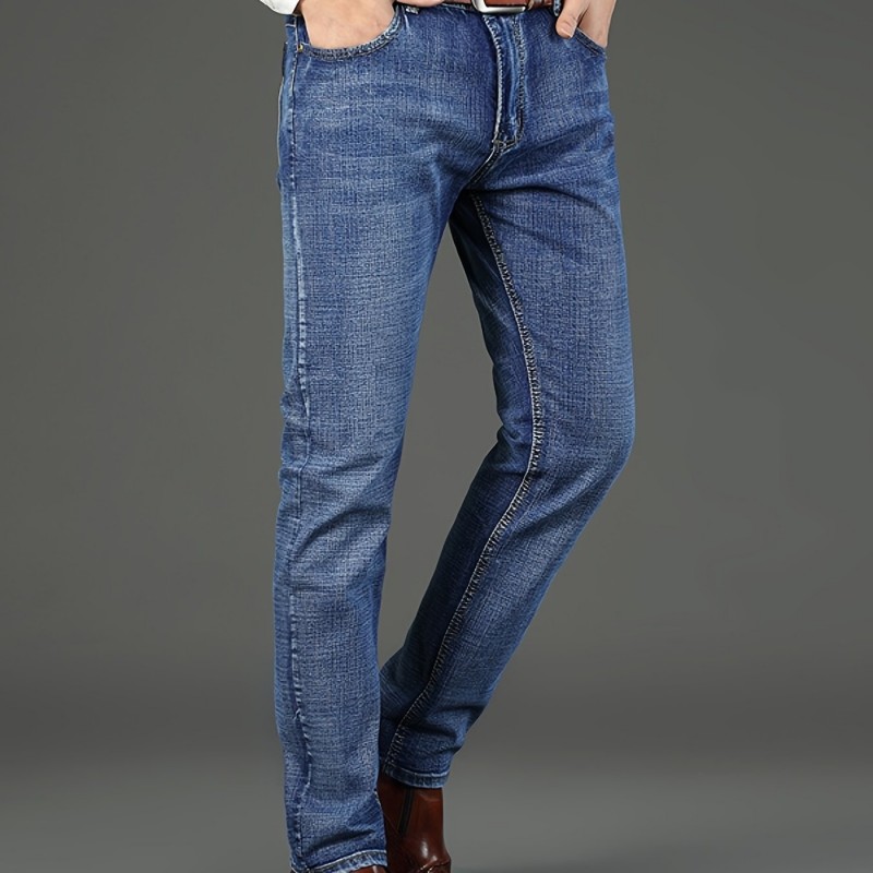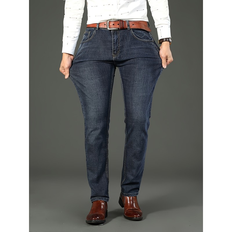 mens classic vintage solid jeans slightly stretch comfy casual pants for mens outdoor wearing details 0