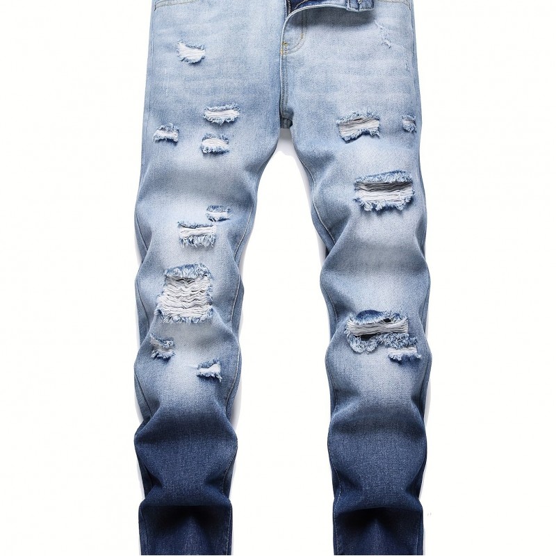 mens regular ripped jeans casual street style distressed denim pants details 1