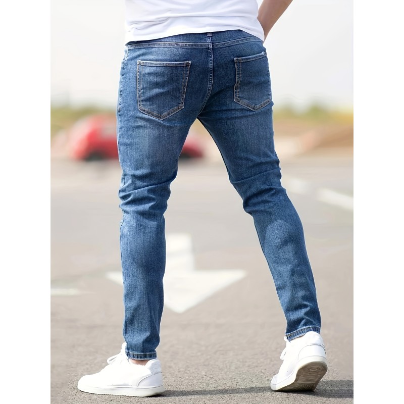 Ripped Design Cotton Slim Fit Jeans, Men's Casual Street Style Leg Mid Stretch Denim Pants For Spring Summer