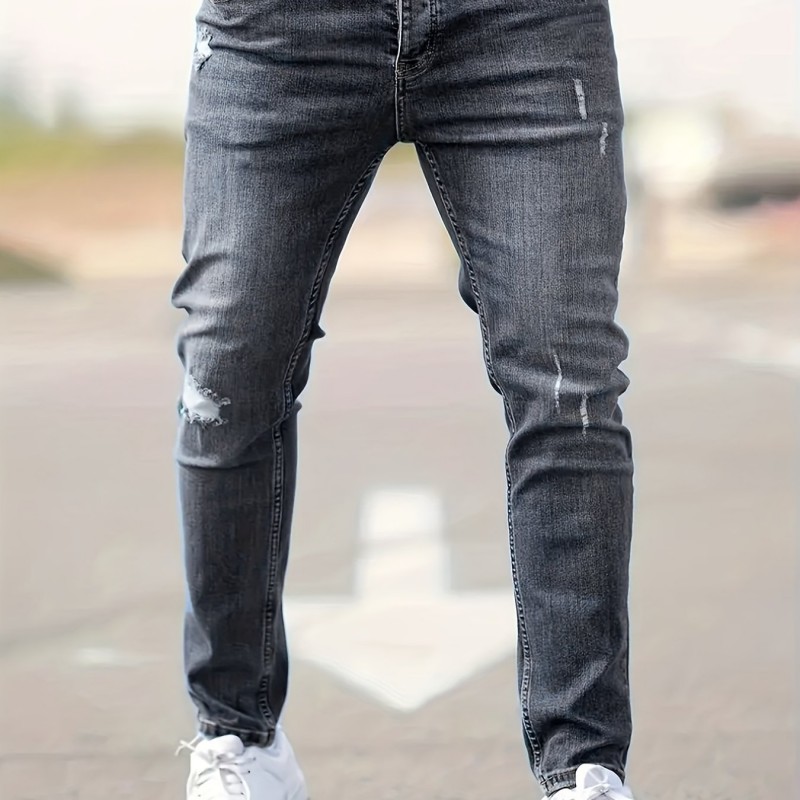 ripped design cotton slim fit jeans mens casual street style leg mid stretch denim pants for spring summer details 1