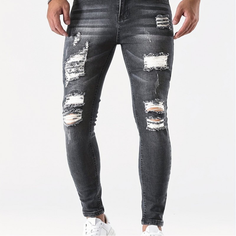 slim fit ripped jeans mens casual street style distressed medium stretch denim pants details 19
