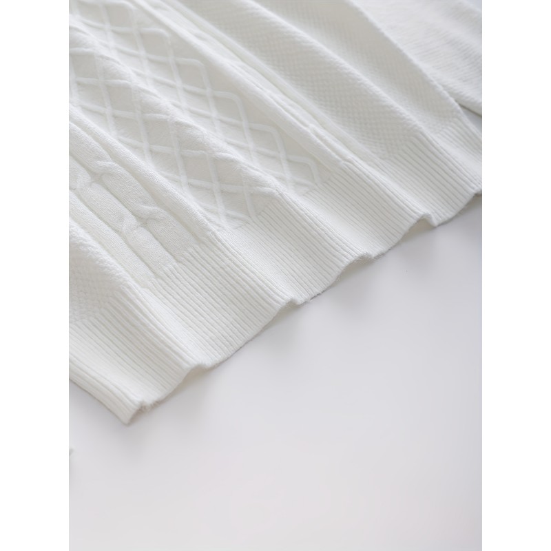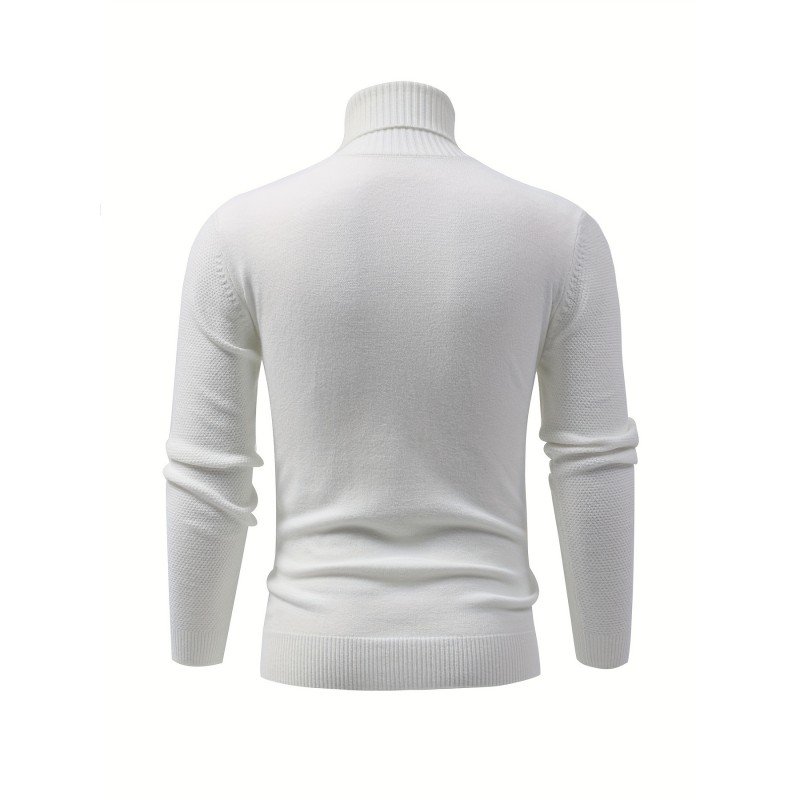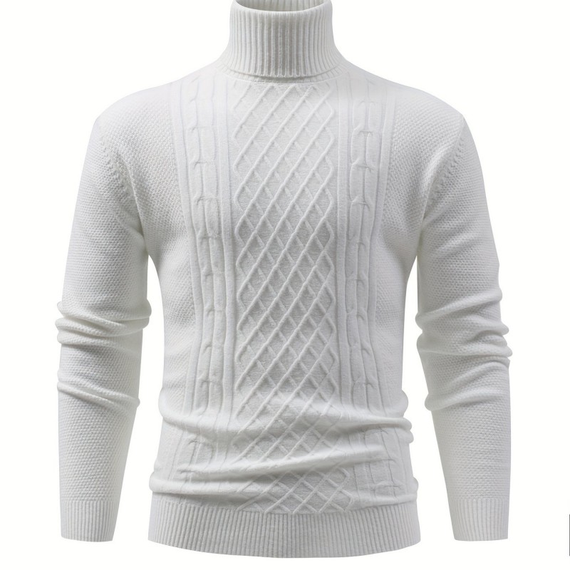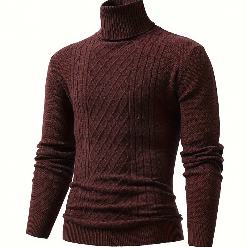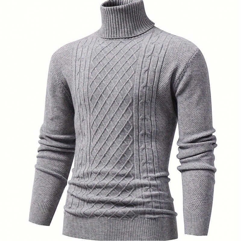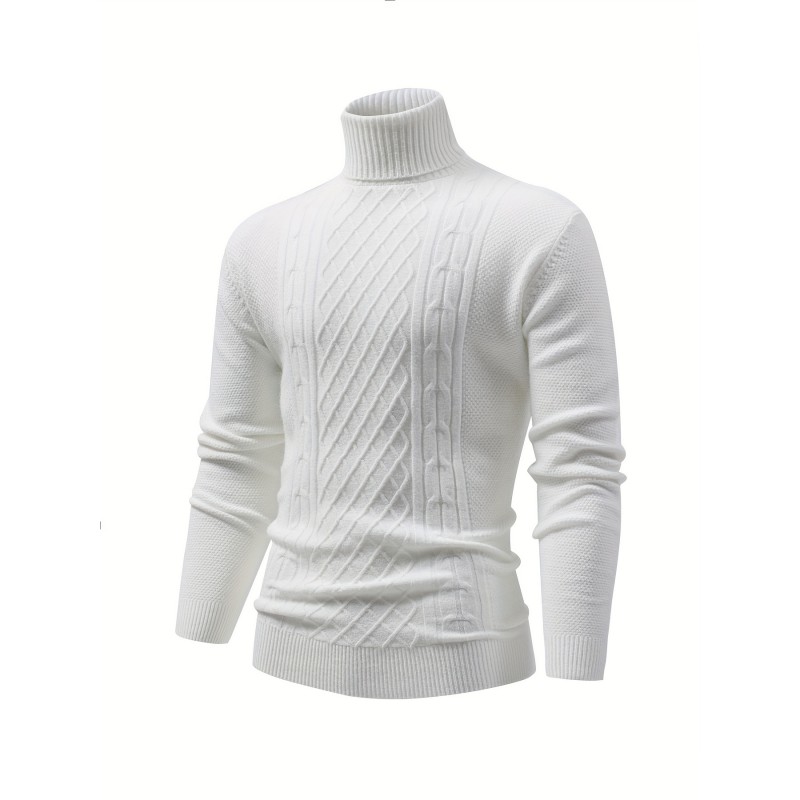 Turtle Neck Knitted Cable Sweater, Men's Casual Warm Solid High Stretch Pullover Sweater For Fall Winter