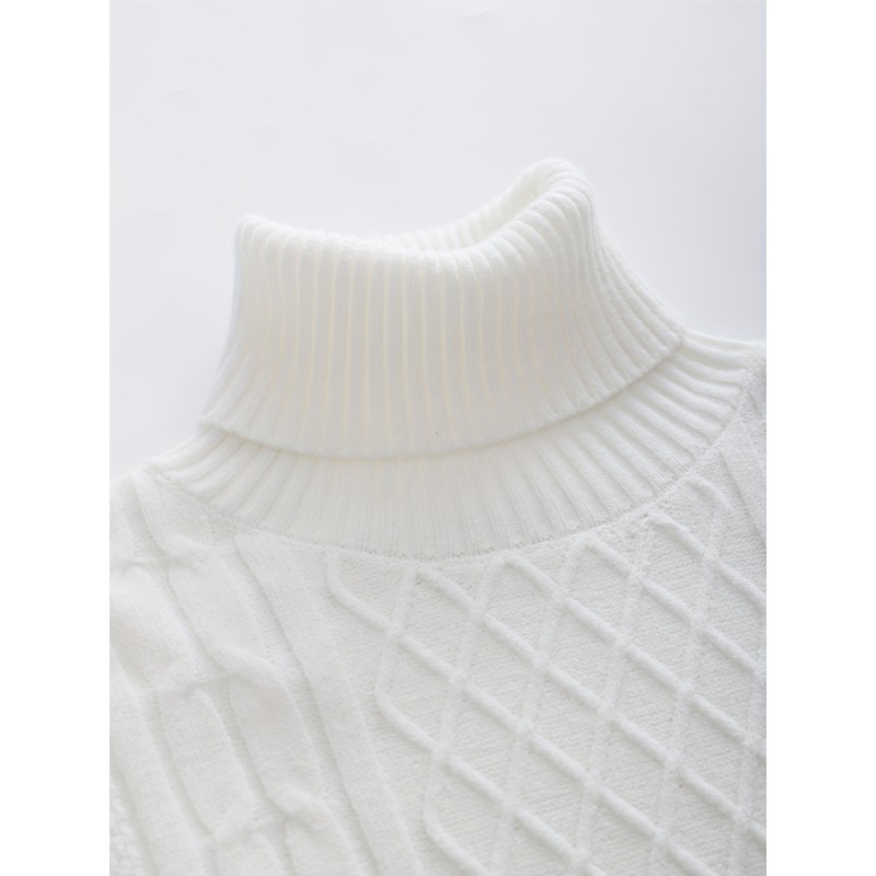 turtle neck knitted cable sweater mens casual warm solid high stretch pullover sweater for fall winter details 43