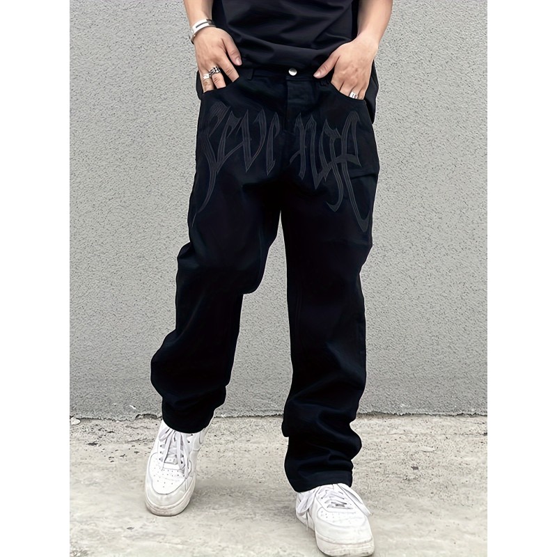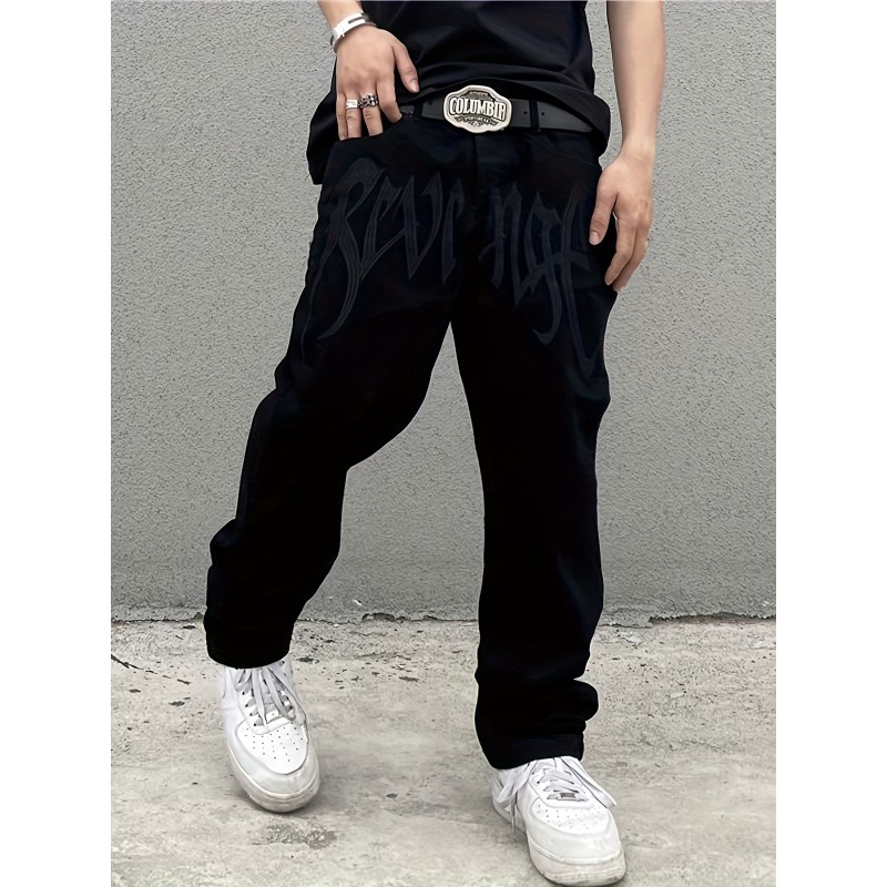 Y2k Loose Fit Jeans, Men's Casual Street Style Baggy Jeans For Fall Winter